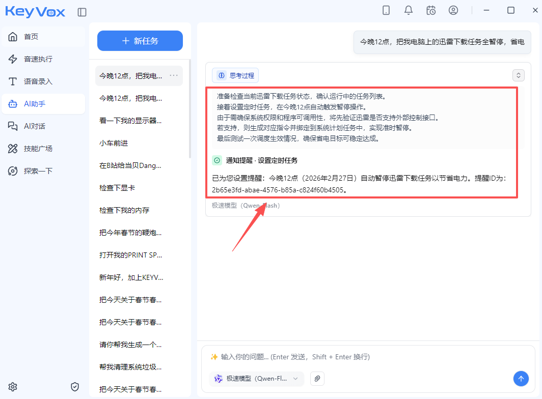 - “今晚12点,把我电脑上的迅雷下载任务全暂停,省电。”(定时任务已设)